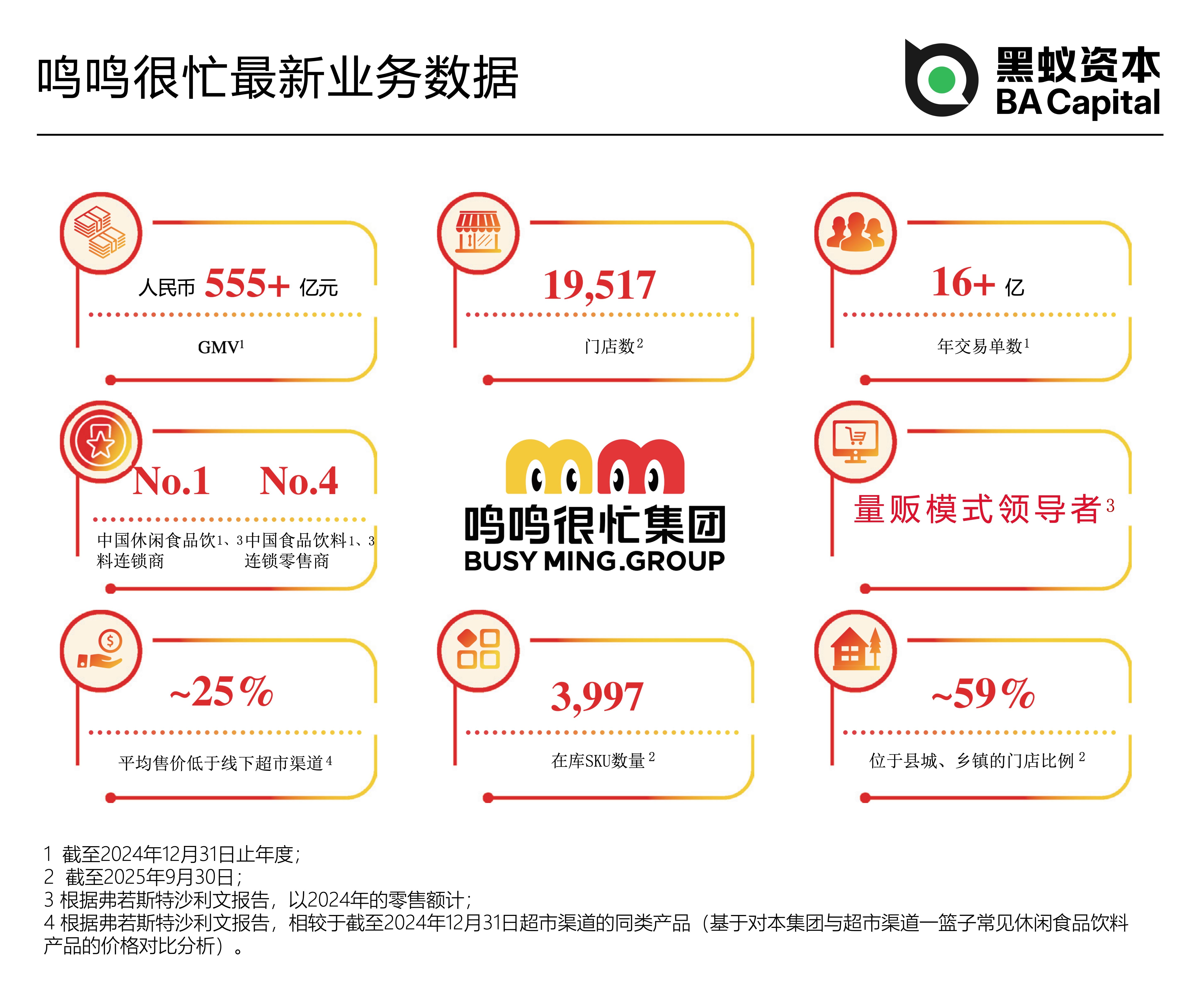 截至9月30日,2025年已有21亿人次消费者在鸣鸣很忙门店消费,已超过2024年全年,其中会员复购比例达到约77%。